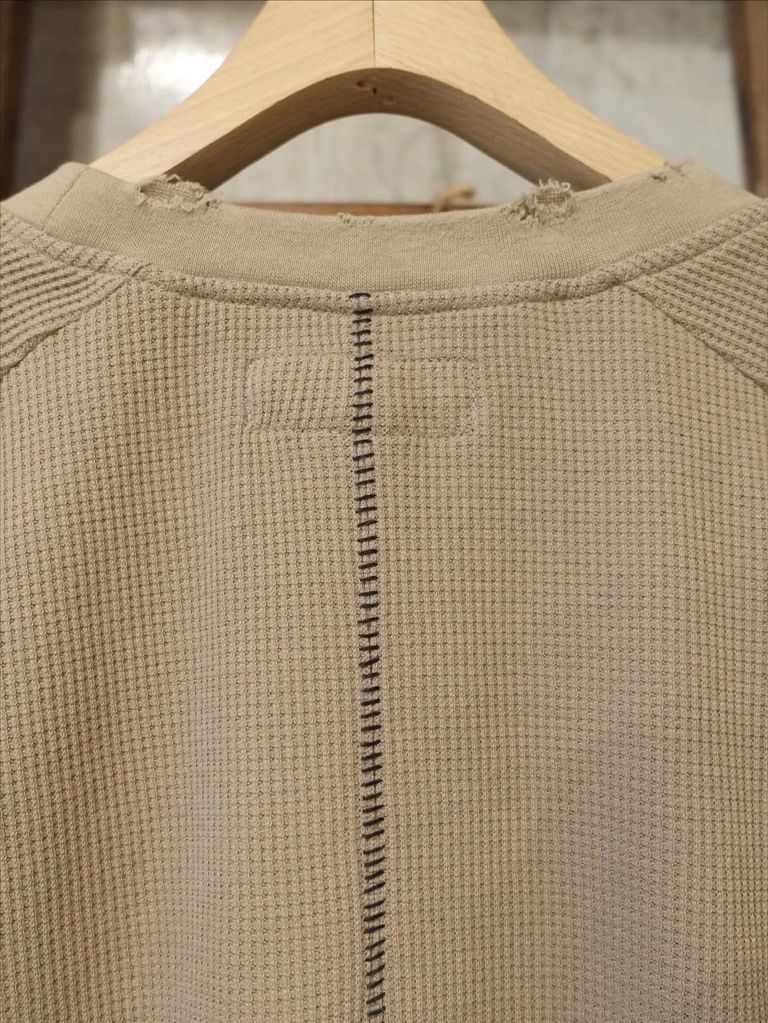 サーマル素材には程よいダメージ加工を施しており、MINUSのラスティックな雰囲気もお楽しみ頂けます。