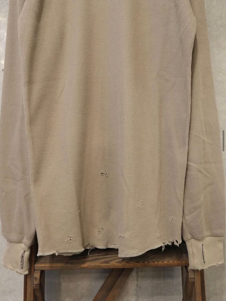 生地:クラシックワッフルニット+ダメージ加工