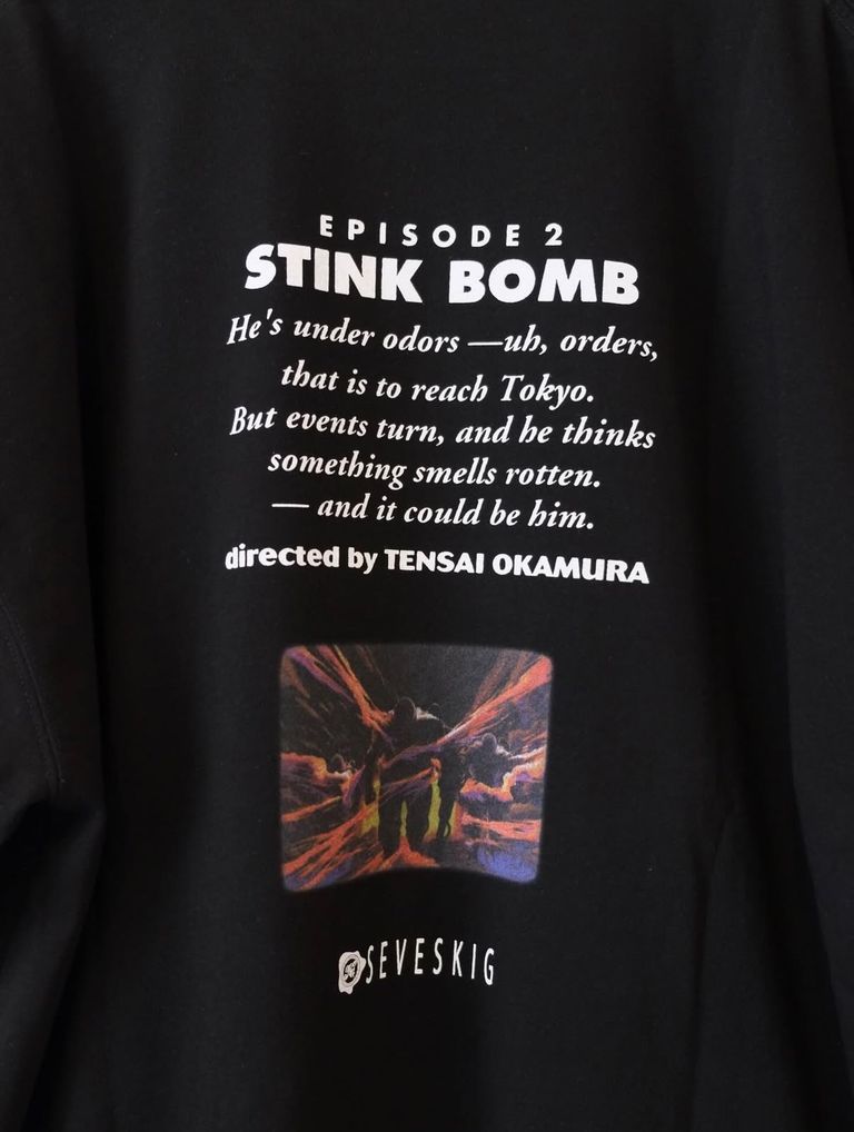 『MEMORIES』EPISODE.2「最臭兵器」冒頭のローカル番組「おはようやまなし」のオープニングを思い出させるS/SLシャツ。