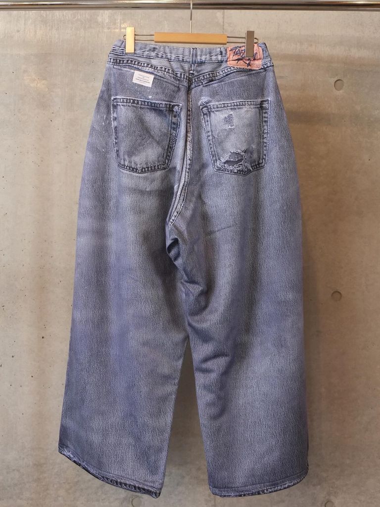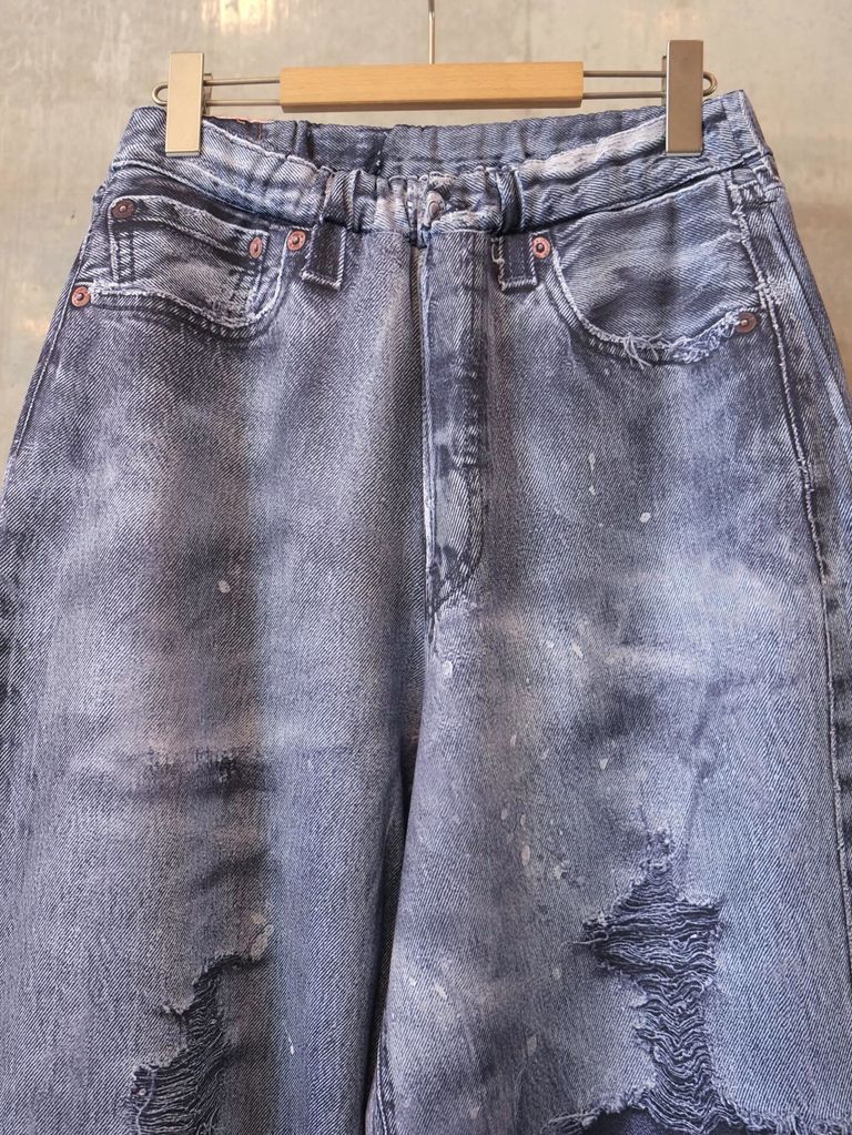 デニム転写プリントワイドパンツ。