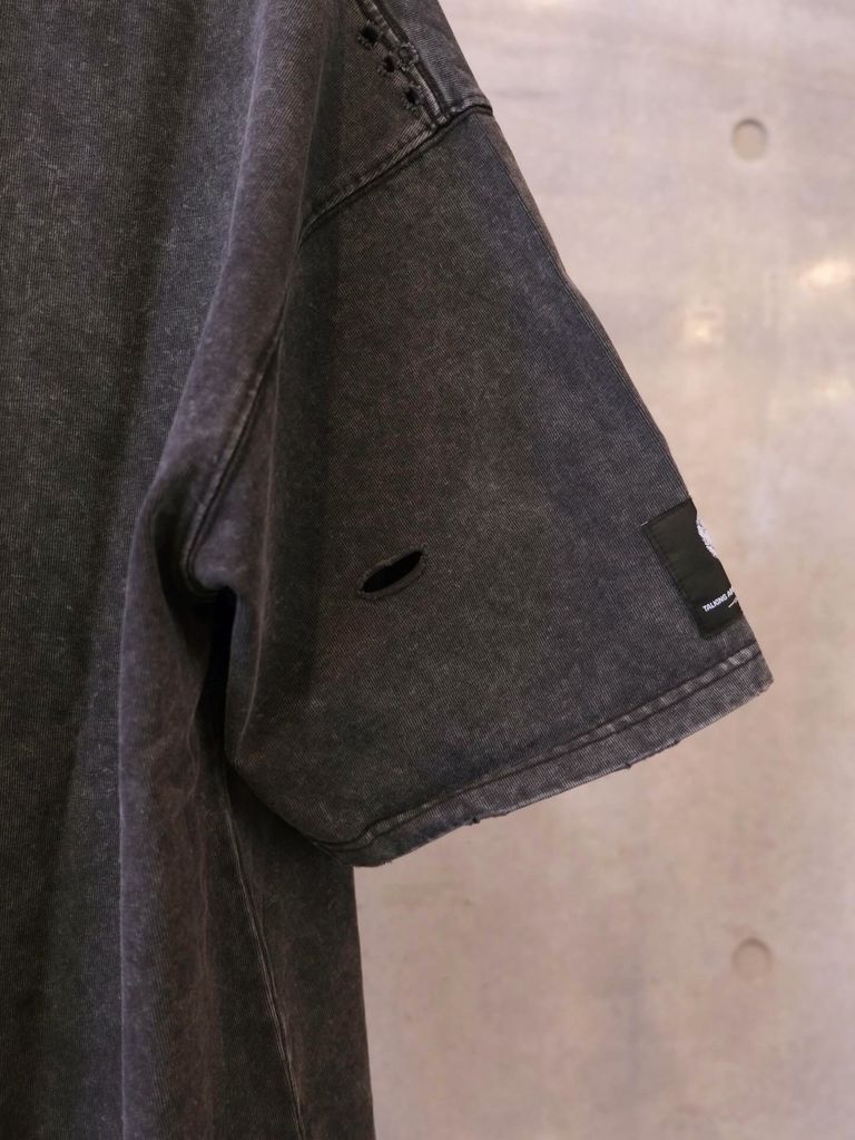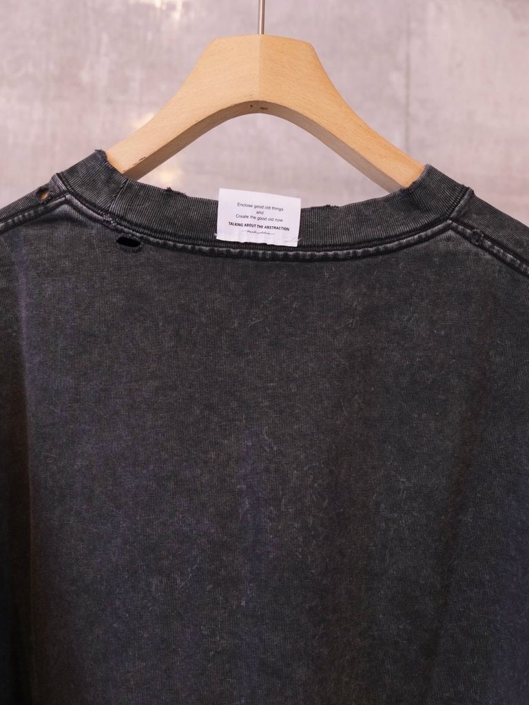 中古加工を施した厚手のTシャツをベースに、着古されたようなフェード感やアタリを加えることで、リアルなヴィンテージの空気感を再現。