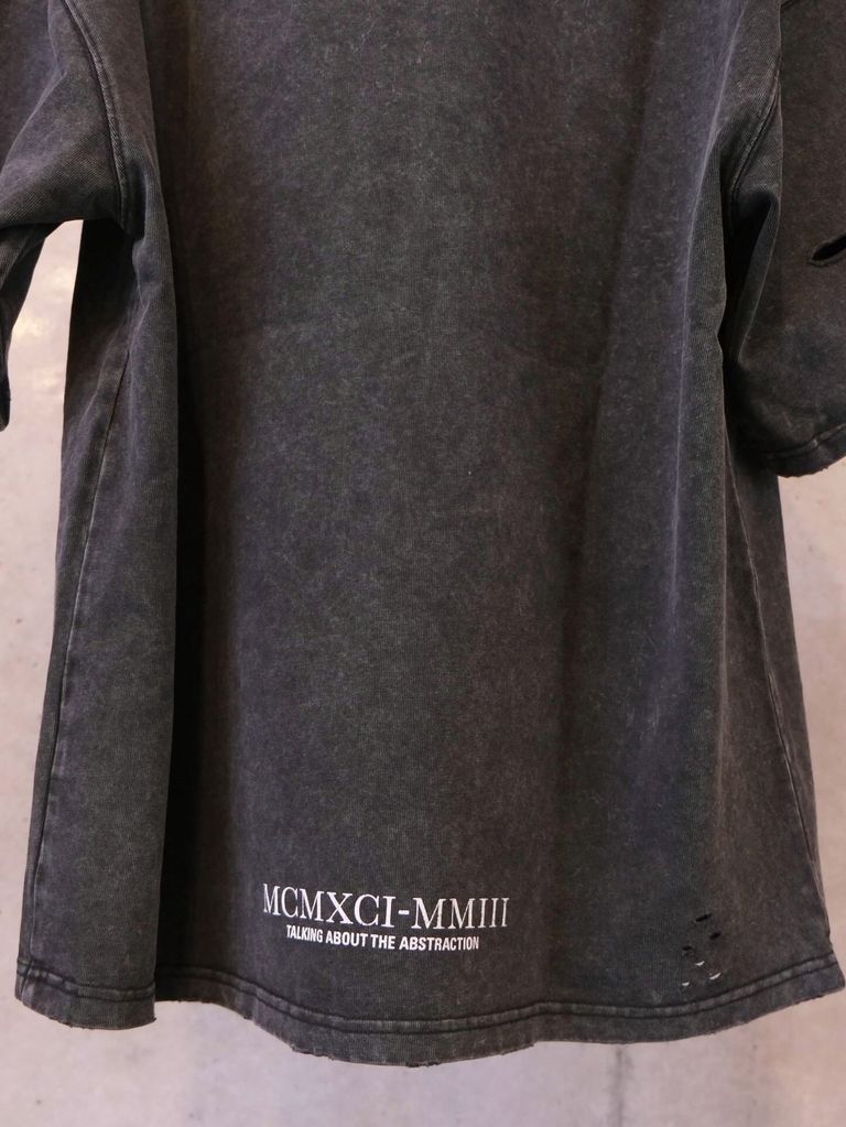 整然とした思想や体制に対する違和感や反発を、ラフで衝動的なタッチのマーキングによって可視化し、グラフィックとして昇華している。単なるプリントではなく、上から“介入”されたようなレイヤー構造が、この一着に独特の奥行きとストリート的なリアリティをもたらしている。