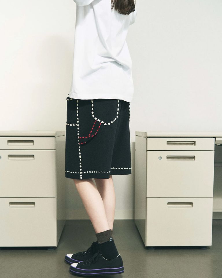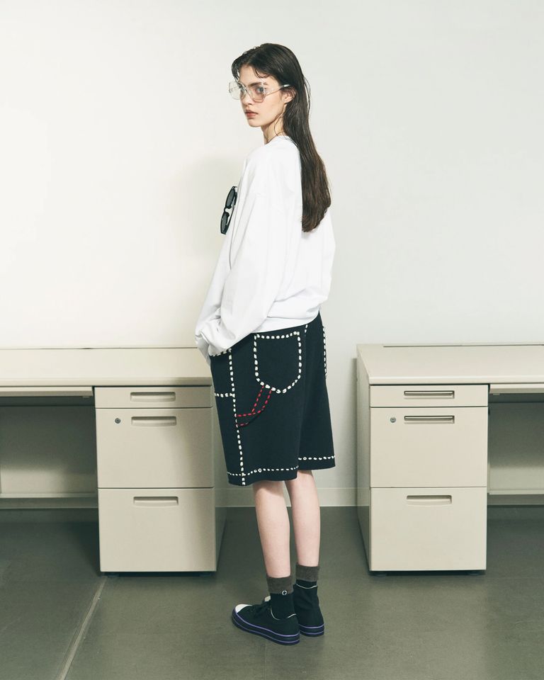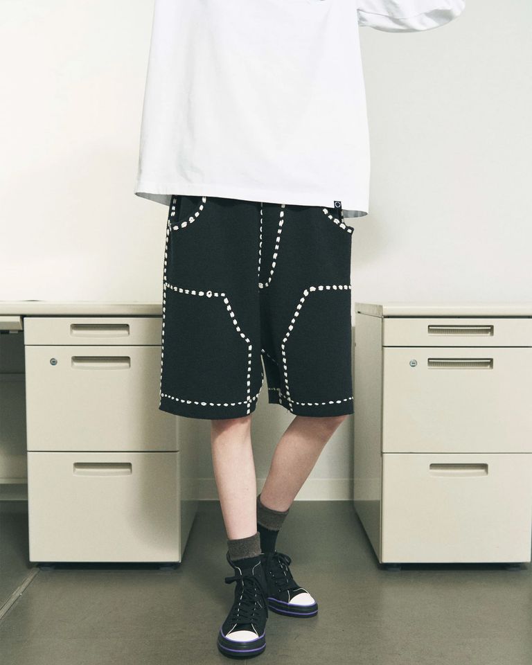 ワークパンツ風のステッチワークをリラックスしたムードで楽しんでください。